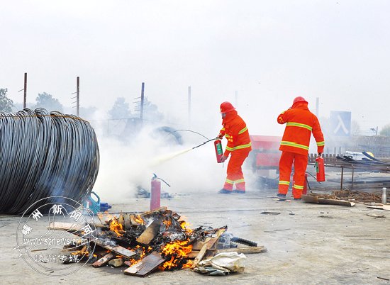 为进一步提高施工人员的安全意识,增强应急抢险反应能力,提高梁板场区火灾、遇险逃生中的应急救援和实战处置能力,3月24日下午,甬金高速嵊州互通西接线工程建设项目部在梁板场区举行消防应急演练。