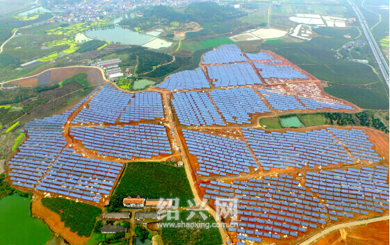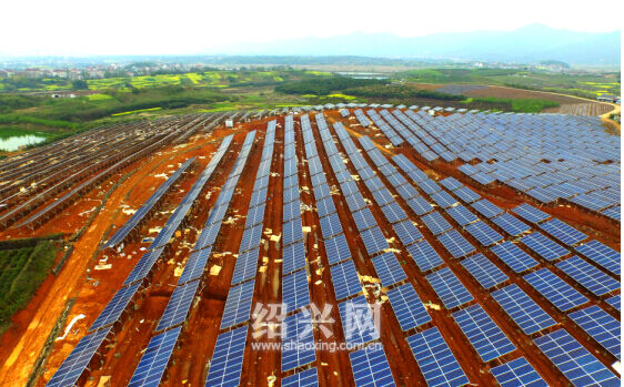 昨天,记者航拍嵊州市内首个利用坡地建设的茶光互补分布式光伏发电站。这个电站位于三界镇一处茶园,占地面积500多亩,由嵊州市懿晖光伏发电有限公司投资逾亿元建设,采用间隙种植茶树,茶树与发电设备共存,设计年均发电量2100万千瓦时左右。