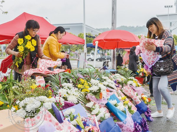 如今,文明扫墓的观念深入人心,清明期间,一束鲜花已成为人们寄托对亲人哀思的最好表达方式,鲜花祭祖已成为一种新风尚。图为花铺中有众多20至50元的鲜花供市民挑选。