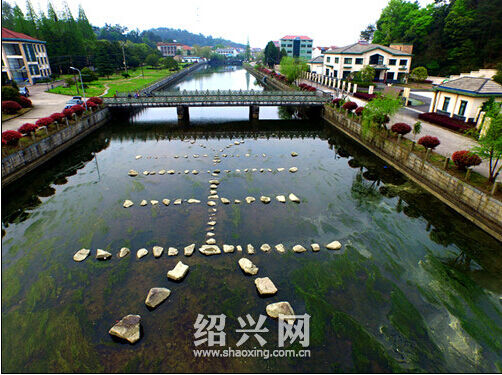 据《嵊州市水利志》记载,嵊州市南山水库总库容1.05亿立方米,是当地最大的水库和饮用水源,其水库坝高80余米,有“浙江第一人工高坝”之称。记者也非常疑惑,在该水库30多米宽的泄洪明渠内,为何用石头整齐拼成一个平躺的“美”字?到底是什么情况?