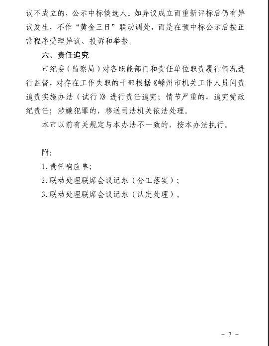 关于印发《嵊州市工程建设项目招投标异议、投诉和举报联动调处机制与责任追究办法》的通知