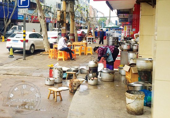 近日,家住城南新区(三江街道)的吴女士向记者反映,在兴隆街上的某些餐饮店“厨房”都设到了店门口,甚至有几家已经摆到了人行道上,每天他们都将大量的洗碗水、油污水,倾倒在人行道上和主干道上,造成道路污秽不堪,希望相关部门加大查处力度。