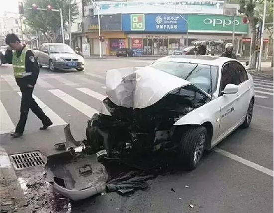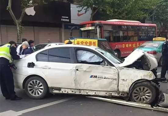 宝马车闹市区狂飙撞上电线杆 肇事司机涉嫌毒驾