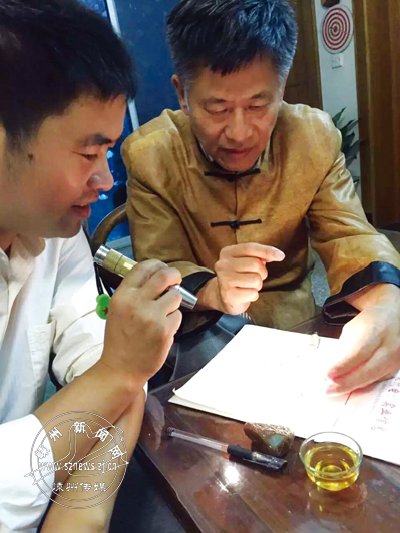 钱继忠和师父袁耀在欣赏玉雕作品