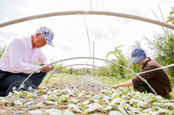 这几天,台湾老人高正贤(左)正在培育丝瓜秧苗。他种植丝瓜不为卖蔬菜,而是卖丝瓜络。据介绍,成熟的丝瓜每个约有60多厘米长,晒干的丝瓜络将运往台湾,制作成丝瓜络鞋垫、丝瓜络弹簧床垫或用于医药行业。