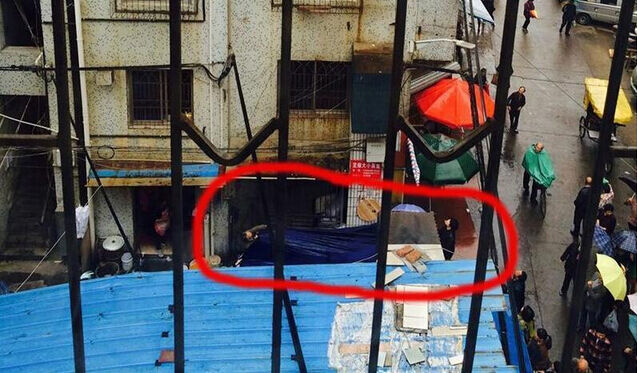 事发现场楼下的好心人纷纷拿出雨披之类撑开,以防孩子掉落。市场管理紧急到市场寻找在江滨市场设摊的父母,报警,楼下的开锁师傅与众人快速上楼展开营救,大家众志成城,只为一个目标,赶紧救孩子。