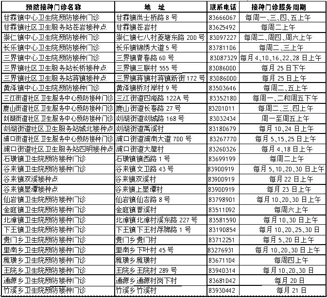 嵊州市各预防接种门诊(接种点)一览表