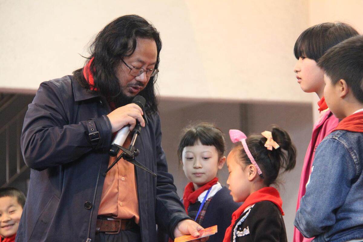 4月25日,共青团中央“全国十佳少先队志愿辅导员”、著名儿童文学作家董宏猷应邀来到长乐镇中心小学,为全校学生上了一堂题为“让作文插上想象的翅膀”的课。