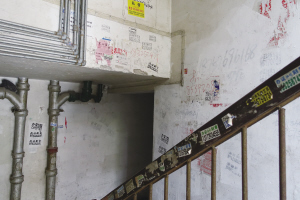 楼道“牛皮癣”,在老旧小区特别是未装防盗门的居民楼里十分普遍。5月20日至22日,记者来到安吉里、越秀里及三江城四海路一带小区,只见密密麻麻的小广告或喷涂或张贴在居民楼的墙壁上、楼梯扶手上、信报箱上、牛奶箱上,斑驳陆离,极为碍眼。随机走进一个楼道,只见如扑克牌大小的小广告印满墙壁,有的是刻章办证、租房中介、修锁开锁等服务项目,有的则是招聘保安、公关等职业,还有宣扬治疗各种疑难杂症,少数是为商品、楼盘做广告,种类五花八门。