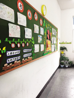 走进中心学校小学部教室,首先映入眼帘的是那一片绿,无论是墙上还是地上,那一盆盆翠绿的绿萝、吊篮,一幅幅用绿色藤蔓树叶拼接而成的学生图画作品,把教室装扮得生机盎然。走进里面,仿佛置身于绿色的海洋,让人精神倍增。据该校教导主任张巧玲老师介绍,小学部所有教室布置都经过精心策划,格调和谐,内容各异,每班的布置都凝聚着班主任的智慧与创意。据介绍,这样的教室布置多次赢得了来校检查工作的领导、来校学习交流的兄弟学校老师及家长们的肯定与赞赏。