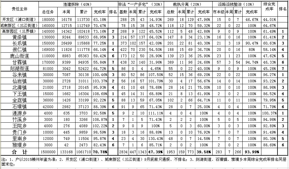 嵊州市“违法建筑大整治行动”一周完成情况综合排名表