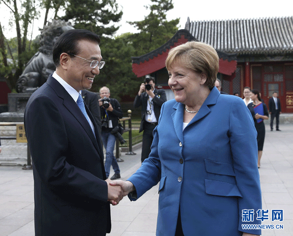 6月12日,国务院总理李克强在北京会见来华进行正式访问并举行第四轮中德政府磋商的德国总理默克尔。新华社记者庞兴雷摄