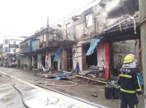 据初步统计,现场过火面积约600平方米,包括店面13间及仓库。