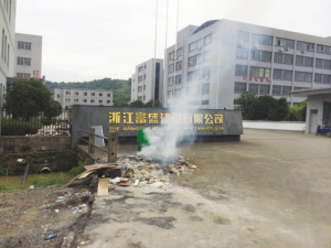昨日,三王工业区浙江富盛建设有限公司门口,一堆垃圾正在燃烧,产生大量烟雾,严重污染空气。周边居民反映,眼鼻喉都感觉呛得慌。