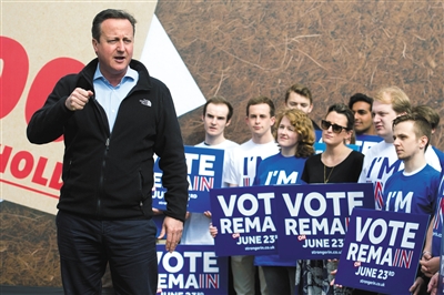 5月14日,英国威特尼,英国首相卡梅伦举办反对脱欧集会。