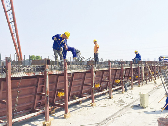 甬金高速嵊州互通西接线工程澄潭江大桥所有梁板近日浇筑完毕,并进入安装阶段,预计7月15日前可完成架设。