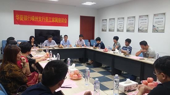 为进一步增进与员工家属之间的相互了解,更真实地了解员工八小时外的思想、生活状况,6月18日,华夏银行绍兴嵊州支行举行员工家属座谈会。会上,嵊州支行史庭龙行长向家属们宣读了绍兴分行李华行长签名发放的“廉洁和谐银行,你我携手共进”倡议书,介绍了华夏银行总行及绍兴分行的基本概况,讲解了嵊州支行开业以来的市场定位、经营管理、团队建设等方面情况。史行长对员工家属长期以来的理解和支持表示感谢,希望家属们一如既往地支持嵊州支行,继续当好勤内助、贤内助、廉内助,并为支行的发展引荐更多的优质客户。