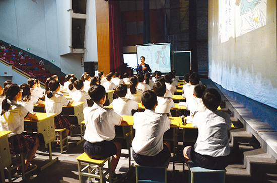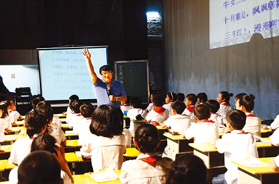 朱老师以“课堂展示”和“课后讲座”的形式,展示了国学教育如何有效地入课堂、激兴趣、提绩效、惠学生的招法。同时,他还把从实践中摸索出来的教方学法——“解字理”让国学课堂充满魅力;“借图片”让国学教育直观形象;“讲故事”让国学课堂生动有趣;“接生活”让国学经典亲切可人;“设情境”让国学课堂声情并茂等,借助《笠翁对韵·六鱼》这一课的教学,作了生动形象的展示。
