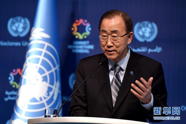 5月24日,在土耳其伊斯坦布尔,联合国秘书长潘基文在峰会闭幕前的新闻发布会上讲话。首次世界人道主义峰会定于当天在土耳其最大城市伊斯坦布尔闭幕。新华社记者赵丁喆摄