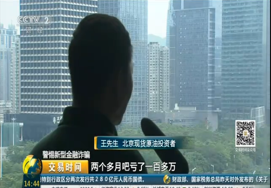 在调查过程中,央视财经记者奔赴广东、湖北、湖南、浙江和上海四个省市,大量投资者向记者反映,因为现货原油交易平台,他们在很短的时间内就血本无归。现在回想起来,非常后悔。