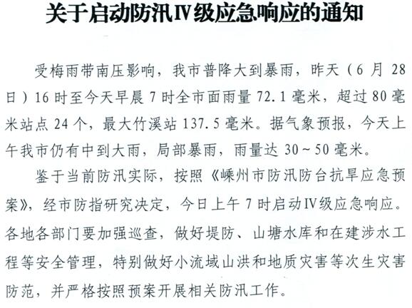 今日上午 我市启动防汛Ⅳ级应急响应