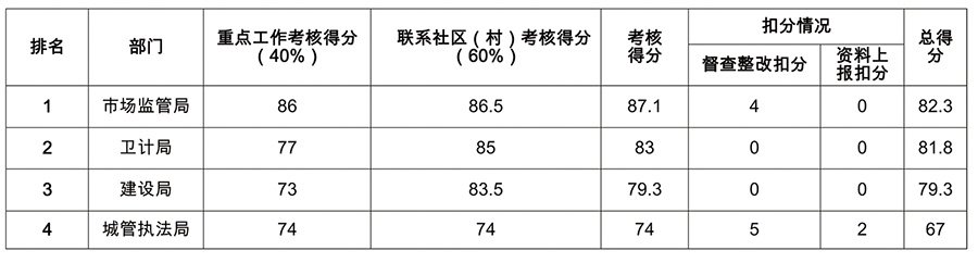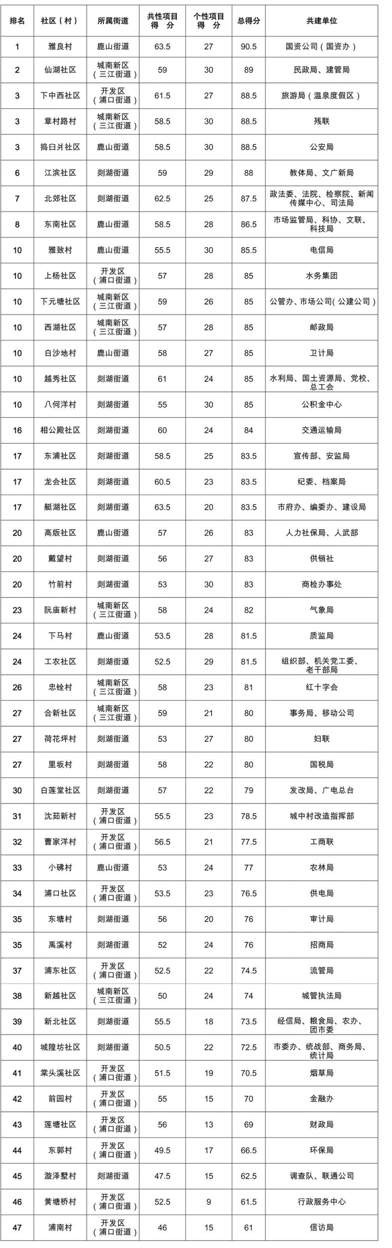 根据《关于印发嵊州市创建国家卫生城市工作“网格化”管理考核办法(试行)的通知》(嵊市委办发【2016】77号)和《关于印发嵊州市创建国家卫生城市共建活动社区(村)重点工作责任清单的通知》(嵊市委办发【2016】33号)文件精神,市创卫考核工作小组于6月27日—29日对全市建成区47个社区(村)和4个重点职能部门的创卫工作进行了实地检查考核。现将考核结果通报如下: