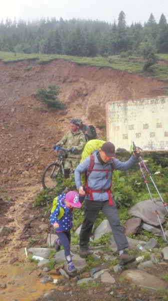 6月20日,在翻越折多山的过程中,雯雯出现头晕的状况。见女儿脸色有些不对,潘土丰立马停了下来,搭了一辆车往回走。在一个小卖部处,吃了巧克力喝了水,雯雯精神好了些,休息几个小时后,父女俩再次上路了。