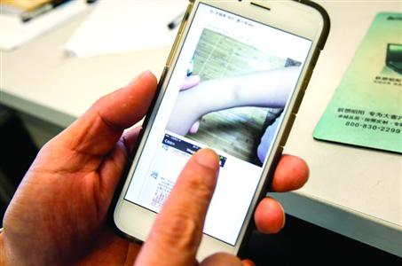 家长向记者出示用手机拍摄的孩子手臂上的瘀青。记者张佳琪