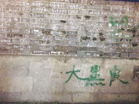 古城墙上的涂鸦盼清理