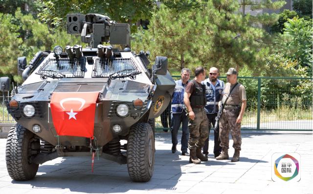 7月18日,在土耳其安卡拉,特种部队车辆停在安卡拉法院前。新华社发(穆斯塔法·卡亚摄)