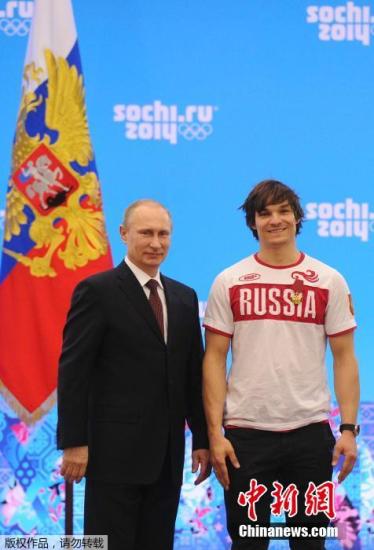 资料图:当地时间2014年2月24日,俄罗斯索契,普京出席俄罗斯功勋运动员颁奖仪式,亲自向冬奥会获奖者授予荣誉。