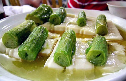 越乡人民有一道传统小菜--霉苋菜梗,吃起来香喷喷、咸津津的,风味独特,令人叫绝。