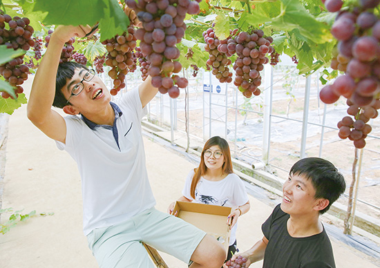 每年夏天,都是各种水果上市的好时节,葡萄是当之无愧的夏季水果之星。近日,我市蓝城农业基地的20亩葡萄已成熟,有夏黑、巨玫瑰、甬优等8个品种,葡萄采摘时间从7月中旬开始到10月初结束。
