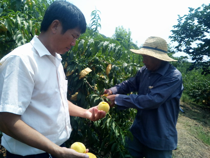 是的,锦绣黄桃已成了黄泽镇的首号夏季水果,为做大做强黄桃产业,该镇已于今年5月份成立了“嵊州市黄桃农民专业合作社”,由水果行家魏道尧同志任会长,协会实施从引种到推广,到统一修剪、统一施肥、统一治虫,各环节全面实施无公害化操作。