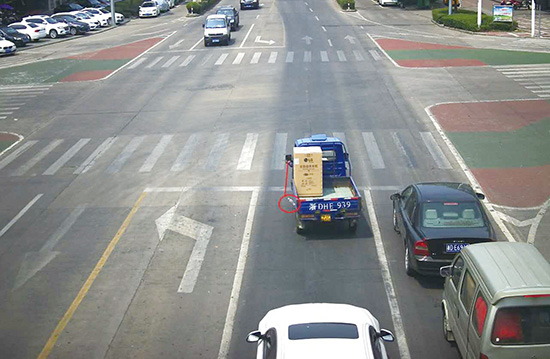 浙DHE939三轮摩托车,车上人员往外扔矿泉水瓶。