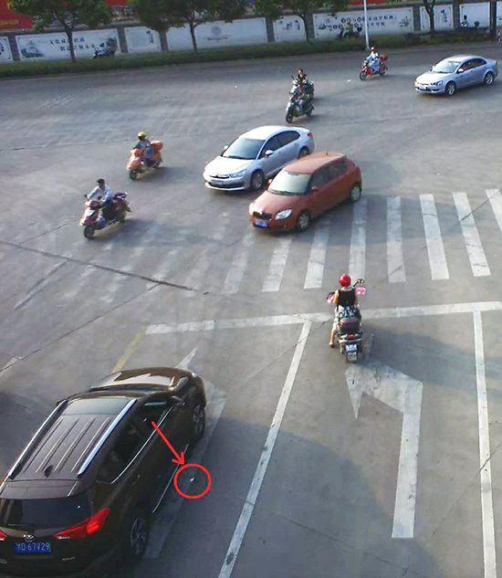 浙D67V29车经过十字路口时,有乘客往外丢废弃物。