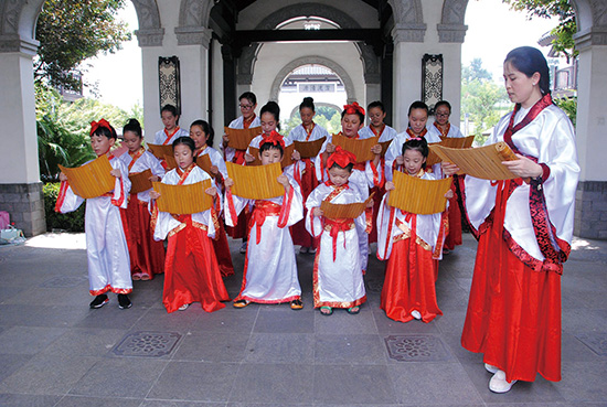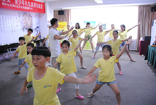 8月6日,训练营最后一天。这一天,孩子们已不需要老师的带领,就能娴熟地跳起“礼仪之邦”舞,就能自觉地念《弟子规》,他们学会了茶艺、餐饮礼仪、电话礼仪……