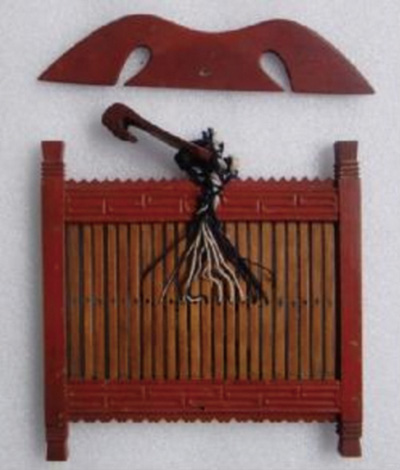 此件由市收藏协会陶如东提供,当为民国时期织带用的工具,三件完备,带架的上下边框还刻有花纹。