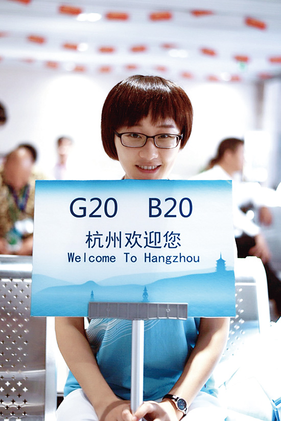 叶雯那今年22岁,现就读于浙江工业大学翻译专业。回忆起此次峰会志愿者的经历,叶雯那仍兴奋不已。她说,当初自己是通过学校的志愿者协会报名参加的。经过两轮面试、三轮测试,叶雯那最终脱颖而出,上岗培训后就成为一名光荣的峰会志愿者。