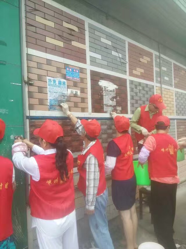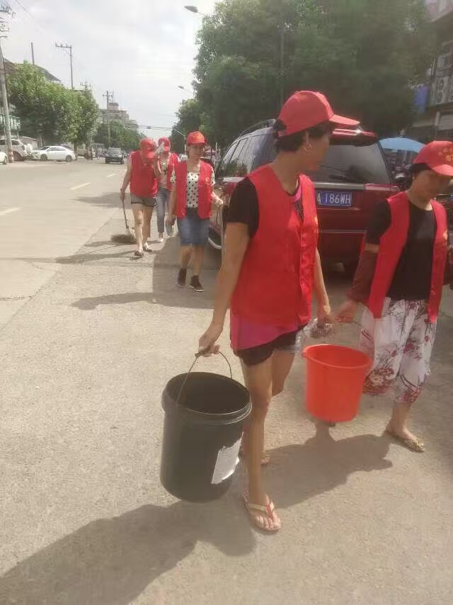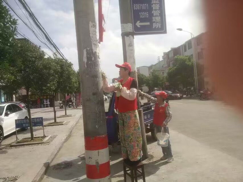 2016年8月10日,长乐村嫂们身穿红马甲,头戴小红帽,手拿各式清洁工具,穿梭在长乐集镇大街上,清理沿途广告贴纸,同时化身平安志愿者,给商家发放平安建设传单。烈日炎炎,也挡不住村嫂们清洁家园的热情,村嫂中有一位68岁的老太太,积极性很高,相当矫健,她表示,自己有多少力就出最大的力做志愿服务工作。村嫂走过的一路,周围的老百姓看到后都纷纷表示赞叹,一些男同志还开玩笑说男的招不招,当然,村哥村嫂,只要有心我们都是欢迎的!村嫂工作,累并快乐着,还有很多队伍在持续地开展活动中......