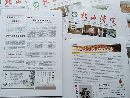 学校处于偏远山区,家庭教育能力不足,学生见识少,境界不够开阔,理想缺失。去年开始,学校积极构建“养正文化”,以涵养品行,实现培育具有正德、正心、正学、正礼之人的目标。