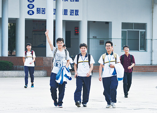 作为我省深化高校考试招生制度综合改革试点的一项重要内容,为期三天的全省普通高中学业水平考试和普通高校招生选考科目考试于昨日顺利结束,此次参加考试的学生为普通高中在校在籍的高二(2015级)、高三(2014级)学生。图为嵊州中学考点考生面带微笑步出考场。
