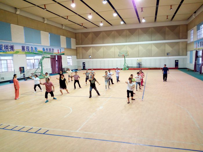 为了备战10月份举行的嵊州市教工会组织的太极比赛,9月份以来,黄泽中心学校教工会加强了对参赛教师的集训组织工作,定时、定点、定人员,紧锣密鼓地开展冲刺阶段的培训活动。敬业的吴师傅更是亲自上阵,详细分解了每一个动作的技术要领,并录下相关视频,与教师一起细细揣摩,既要做到动作到位,又要做到整齐划一。吴师傅鼓励参赛的教师:太极拳讲究的是精气神合一,练好太极拳,不仅可以强身健体,更可以很好地调节教师的工作和生活,提高人生品位,丰富生活情趣。