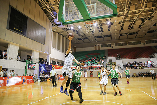 “梦想杯”首届嵊新篮球精英赛在市体育馆举行。此次比赛由嵊新两地组建的10支球队参加,比赛时间为10月23日至11月6日。图为本届比赛揭幕战——嵊州东大化工队对阵新昌锦衣卫队。