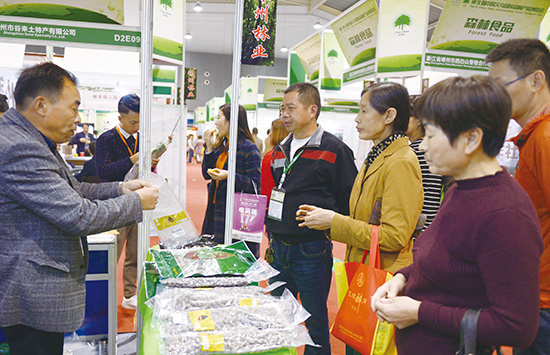 第9届森博会以“绿色引领、共享发展”为主题,吸引了45个国家和地区的1595家企业参展,设国际标准展位3736个,参展企业和展位数均创历史新高。预计到会境内外采购商10万人次以上,其中境外客商5000人以上。图为我市藏天岗农副产品展位前,人们正在选购香榧。