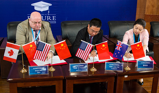 这一天,不同肤色、不同语言的教育专家们听取了逸夫小学的办学理念,通过实地参观走访和与学生交流,达成了合作发展的共识,并签订了合作协议。