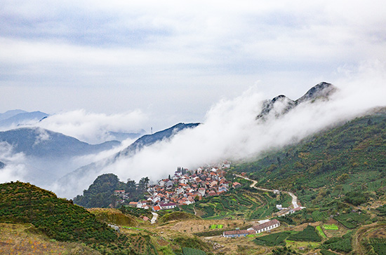 云雾缭绕小山村