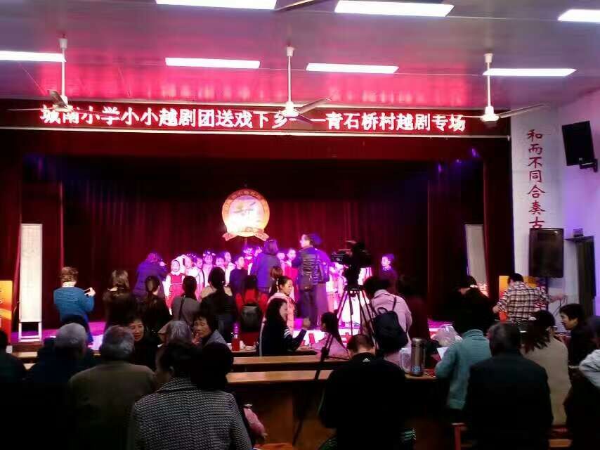11月12日晚上,黄泽镇青石村文化礼堂灯火通明、越音缭绕,掌声、欢呼声时起时伏,原来今晚嵊州市城南小学小小越剧团送戏下乡来到该村,受到了乡亲们的热烈欢迎。