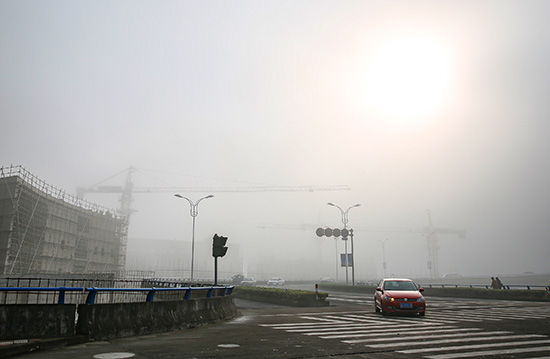 11月18日,我市出现大雾天,给市民出行造成了一定影响。(王勇吉摄于双塔大桥路段)
