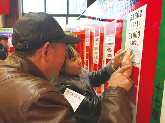 昨日下午, 2016年度第二批公租房择房仪式在广厦大酒店举行,共有52户参与抽签。择房人根据抽签顺序依次选择房号,在身份信息得到确认后,到艇湖公寓物业公司签署承租合同,领取新房钥匙,就可以入住。另外,保障房家庭的年审工作从12月份开始,请大家不要错过。图为择房现场。